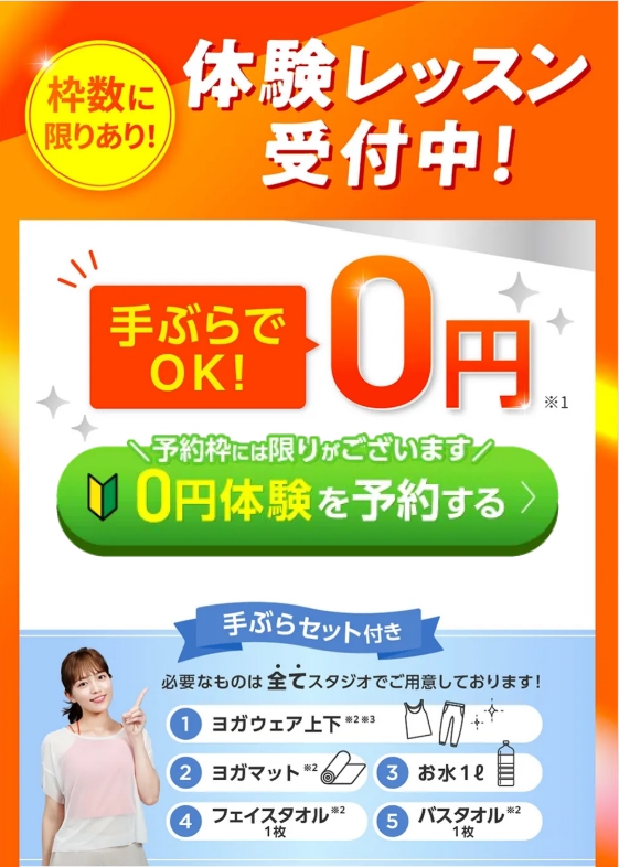 ウェア・タオル・ヨガマットが全部セットでラクに通える。